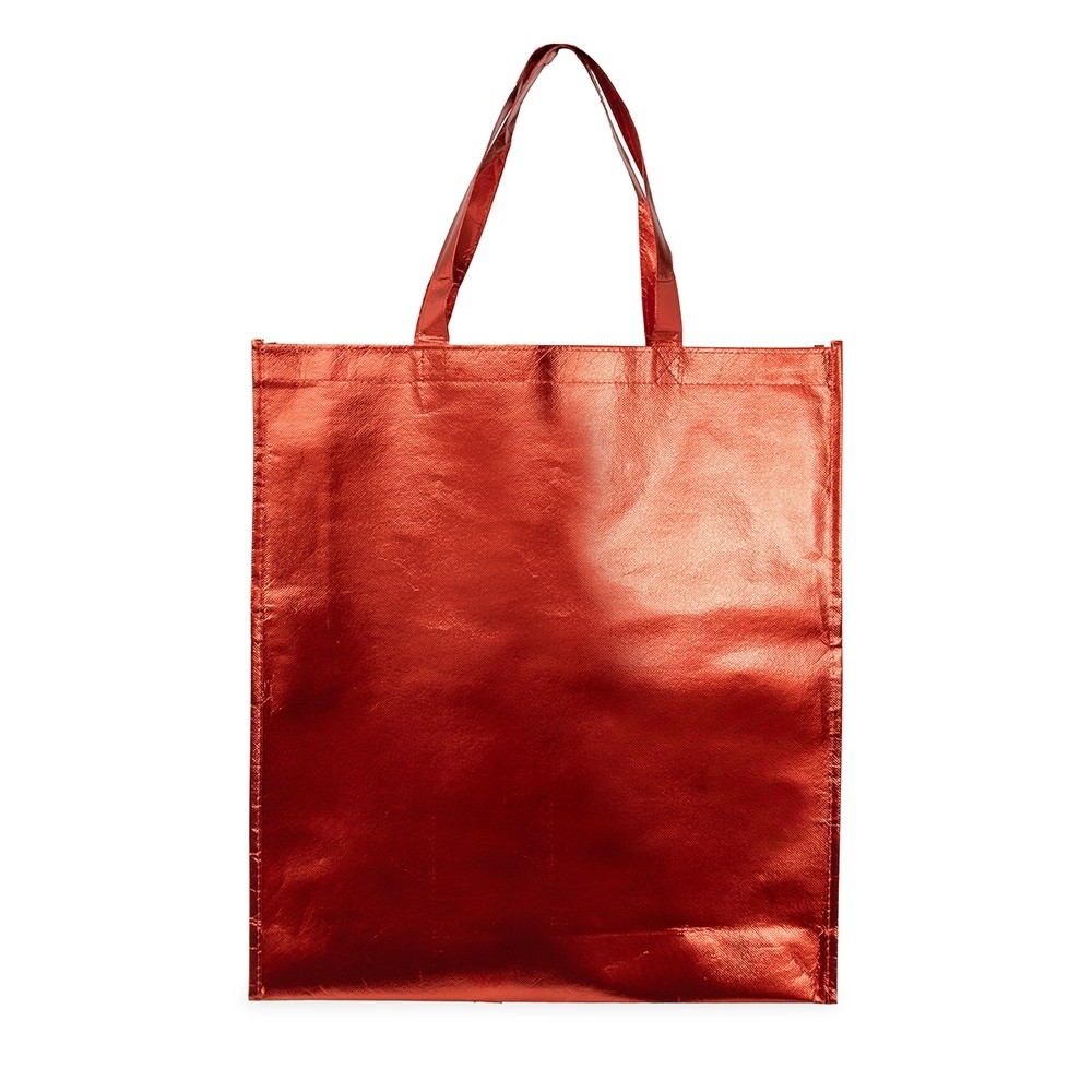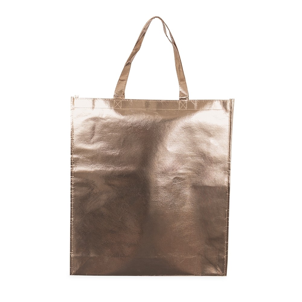 Sacola confeccionada em TNT com revestimento externo laminado e duas alças costuradas.