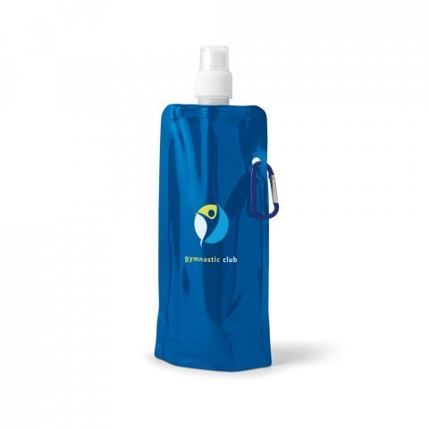 Squeeze dobrável em PE com bico de sistema "push-pull" e acabamento mate 460 mL Squeeze dobrável em PE com bico de sistema "push-pull" e acabamento mate. Contém uma tampa transparente e um mosquetão para fácil transporte. Capacidade até 460 mL. Certificação EU Food Grade. 120 x 260 x 30 mm