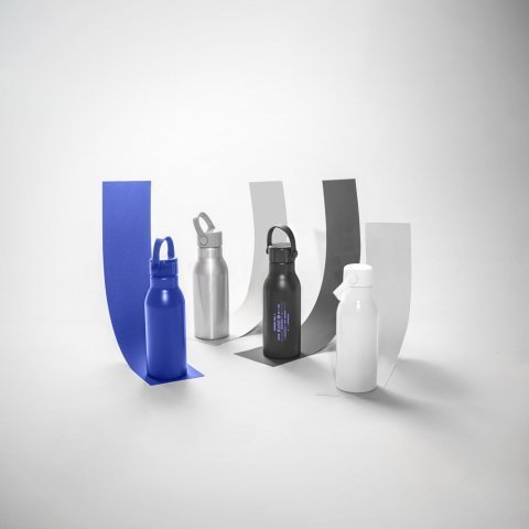 Squeeze em alumínio 100% reciclado com parede simples e acabamento mate 700 mL Squeeze em alumínio 100% reciclado com parede simples e acabamento mate. Tampa em PP com pega de silicone para fácil transporte. Capacidade até 700 mL. Fornecido em caixa presente de papel kraft reciclado. Certificação EU Food Grade. ø73 x 213 mm