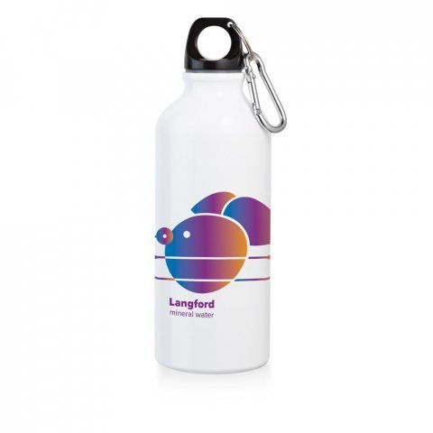 Squeeze para sublimação em alumínio, com mosquetão para fácil transporte. Capacidade até 500 mL. Caixa branca 94656 vendida opcionalmente. Certificação EU Food Grade. ø66 x 210 mm