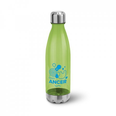 Squeeze em AS, com tampa e base em aço inox 700 mL Squeeze em AS, com tampa e base em aço inox. Capacidade até 700 mL. Caixa branca 94670 vendida opcionalmente. Certificação EU Food Grade. ø74 x 265 mm
