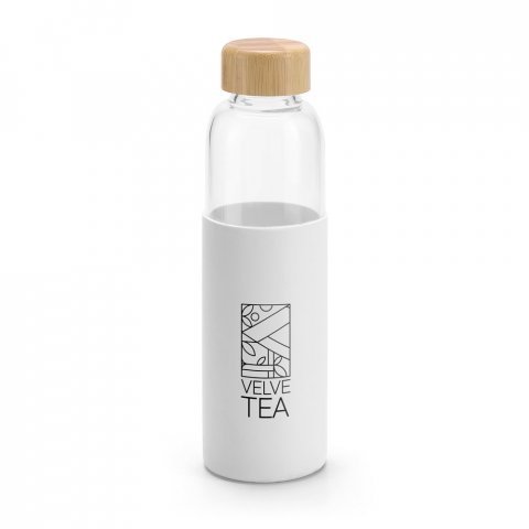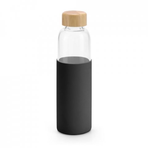 Squeeze em vidro borossilicato com tampa em bambu 600 mL Squeeze em vidro borossilicato com tampa em bambu. Revestido com luva em silicone que oferece uma proteção extra. Capacidade até 600 mL. Fornecido em caixa presente. Certificação EU Food Grade. A cor e o resultado da impressão nos materiais naturais pode variar entre produtos. ø68 x 231 mm