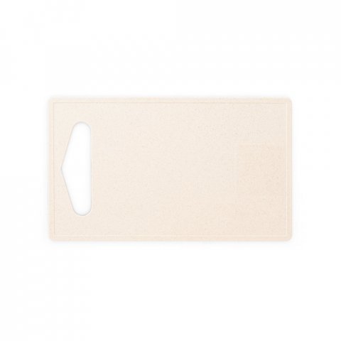 Tábua de corte em fibra de bambu (50%) e PP (50%). Contém um quadrado liso no fundo da tábua, adequado para a personalização. Certificação EU Food Grade. 237 x 140 x 4 mm